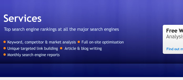 Onsite Optimisation – By ongoing trial-and-error testing our specialists understand how Google’s spiders crawl and index websites. Onsite SEO involves relevant keyword placement in the most important areas of each page, source-code optimisation, text content optimisation, internal linking, navigation optimisation and directory structuring, as well as resolving any issues which will be affecting the ranking of your website and any of its pages. The aim of this onsite work is to ensure Google spiders can effectively crawl each page placing emphasis on the most important keywords. The result is a site wide rise in rankings for ALL keywords across your products, services and brands.